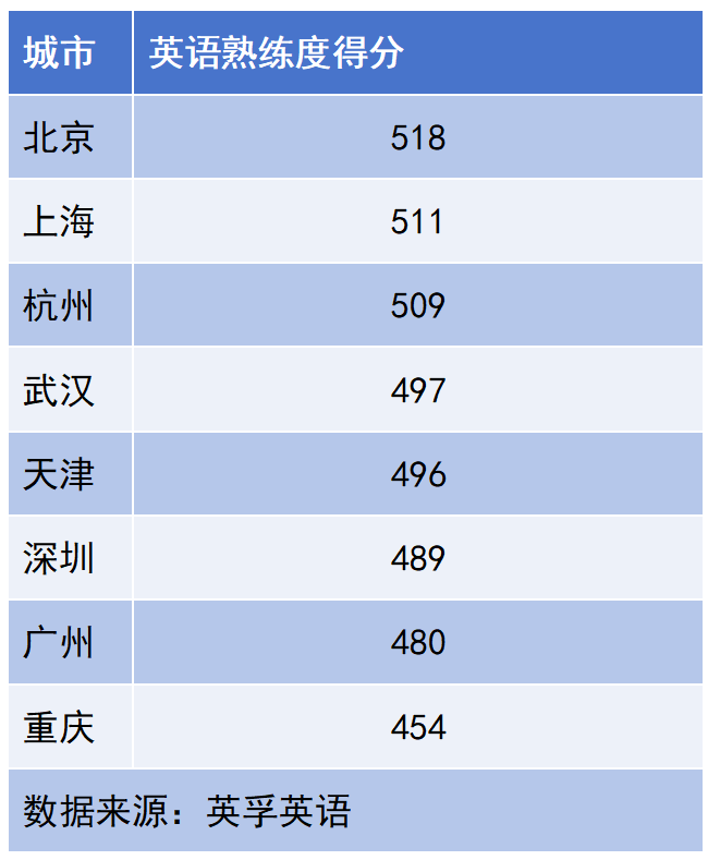 另一方面,地區居民的英語熟練度水平,也能夠提供國際參會者更便利的城市體驗。比如英孚英語每年都會對全球的母語為非英語的城市進行“英語熟練度”排名,在國內,北京和上海的熟練度排名前兩位,而杭州超過了武漢、天津、深圳、廣州、重慶等城市,排名第3位。