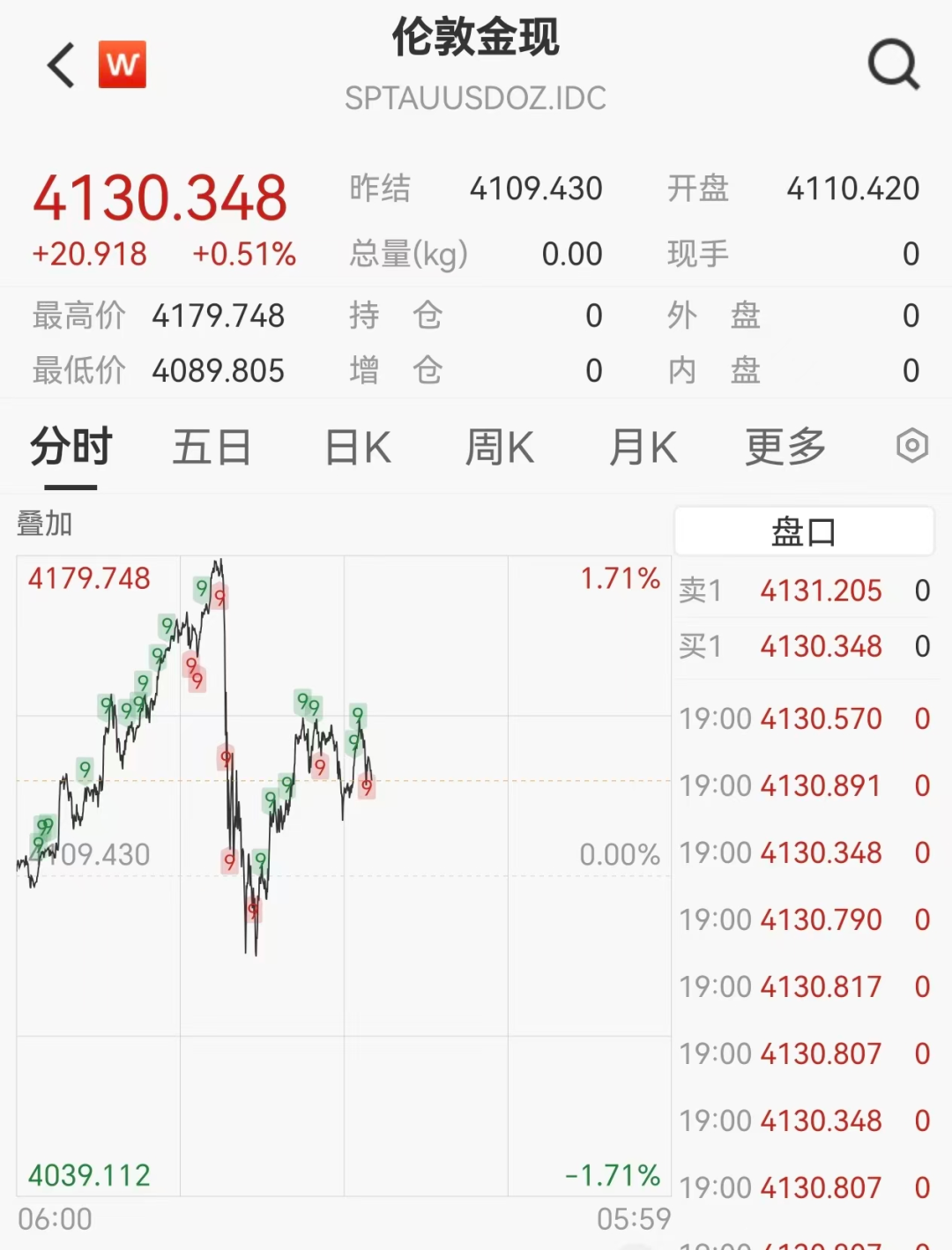 14日早間,現貨黃金觸及4148美元/盎司新高;14日下午一度急跌,截至19:00,最新報價4130.35美元/盎司,年內累計漲超57%。