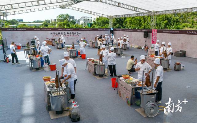金秋十月,鹵香裊裊。10月18日上午,汕頭市澄海區獅頭鵝產業城內鑼鼓鏗鏘、人頭攢動,澄海區鹵鵝技藝暨創新融合菜品大賽在此舉行。15支參賽隊伍同臺競技,在180分鐘內完成“潮汕鹵鵝”“菠蘿炒鵝胗”“鵝肉炒飯”三道菜品的現場制作,以舌尖上的較量詮釋傳統與創新的融合。
