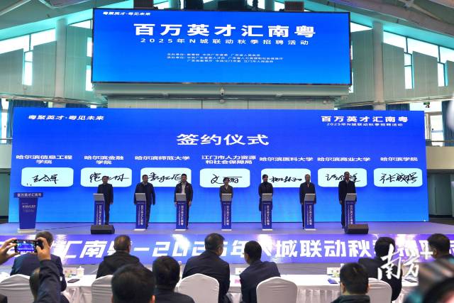 形式之活,覆蓋目標人群。早在今年8月至9月,江門市提早行動,與黑龍江省有關部門及高校深度對接,就招聘活動時間、形式、學生精準發動等交換意見,達成共識。針對黑龍江高校分布廣、學科特色鮮明的特點,招聘活動創新采用“1+2+1+N”的多元模式精準推進。在頂尖學府哈爾濱工業大學舉辦大型綜合雙選會,廣納賢才;在哈爾濱工程大學、東北林業大學則聚焦相關專業領域,開展“小而精”“小而美”的特色招聘;在東北農業大學校園雙選會中巧妙設置“百萬英才匯南粵”廣東專區,精準對接涉農學科人才。此外,活動觸角還延伸至黑龍江科技大學、哈爾濱醫科大學、哈爾濱師范大學等多所高校,通過校企對接會、學子座談會等形式,將廣東的求賢若渴傳遞到更廣泛的學子中間,探索出了一套行之有效的“現場招聘江門模式”。