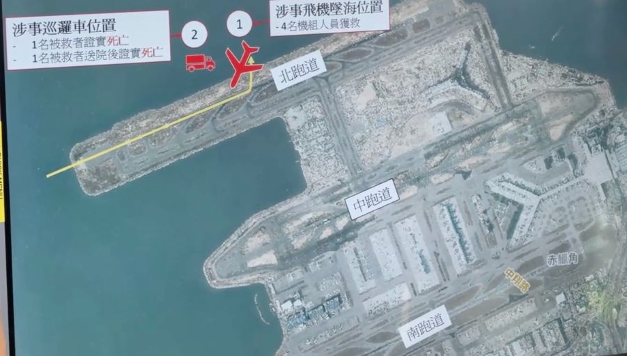 據悉,該貨機意外撞到一輛正在跑道上巡邏的機管局巡邏車。巡邏車連人帶車被撞落海,車上的男乘客當場身亡,而男司機則重傷送院搶救后不治身亡。救援人員在水底約7米左右將巡邏車乘客和司機救出。