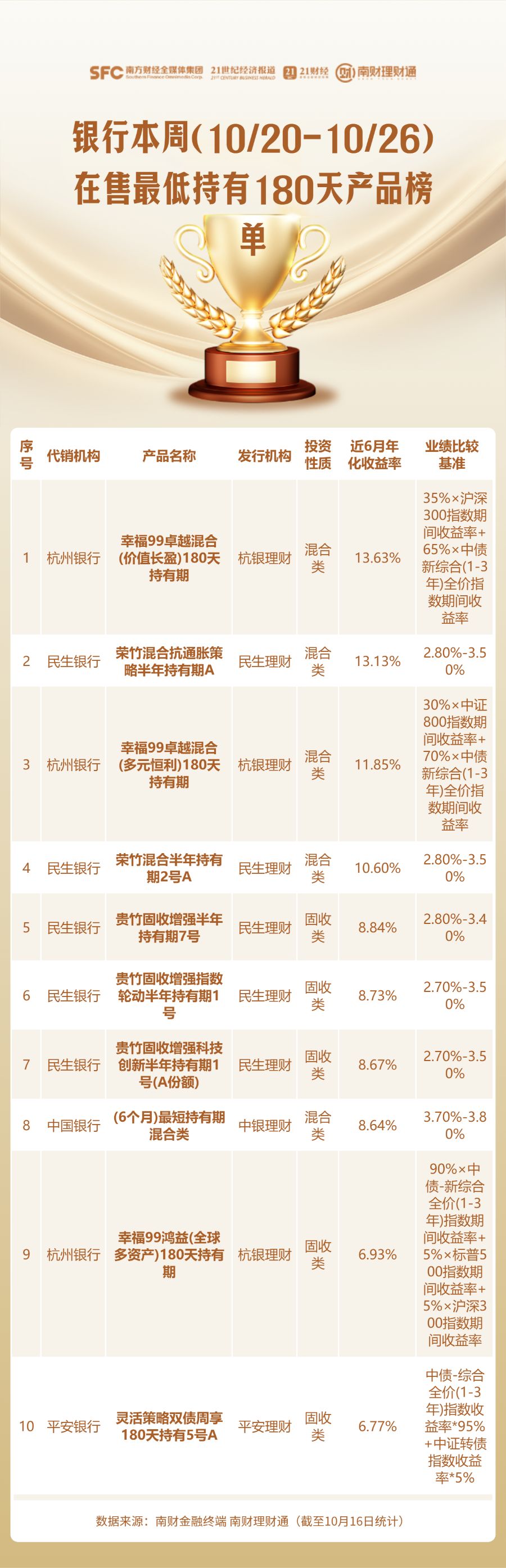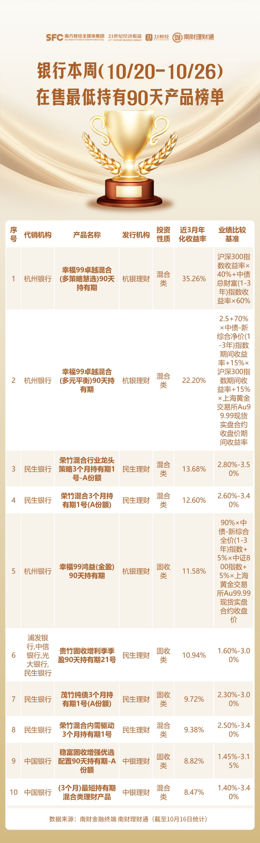 需要特別提醒的是: 本榜單對理財產品“在售”狀態的判斷基于其投資周期推算。但實際情況中,部分產品可能因額度售罄,或銀行針對不同客戶展示的產品清單存在差異而無法購買。因此,建議投資者以代銷銀行APP的實際展示為準。