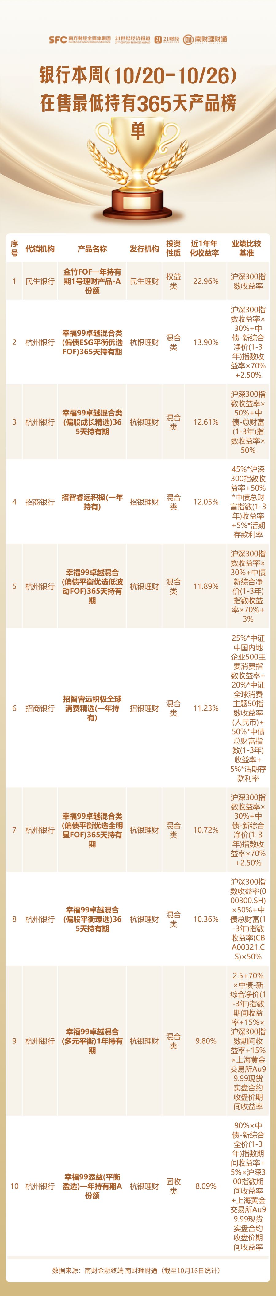 編者按:當前銀行理財貨架產品琳瑯滿目,諸如“增強”“穩健”“均衡”等名稱相近、特征模糊的產品層出不窮,投資者應如何甄別與選擇?為降低投資者的選擇成本,南財理財通課題組從代銷機構角度入手,每周一聚焦各渠道當周在售的理財產品,搜羅其中業績表現優異者,并發布代銷產品業績榜單。