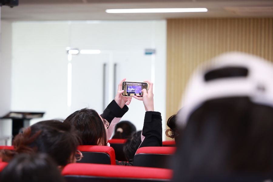 (現場學生積極記錄、與嘉賓互動。攝/梁遠浩)