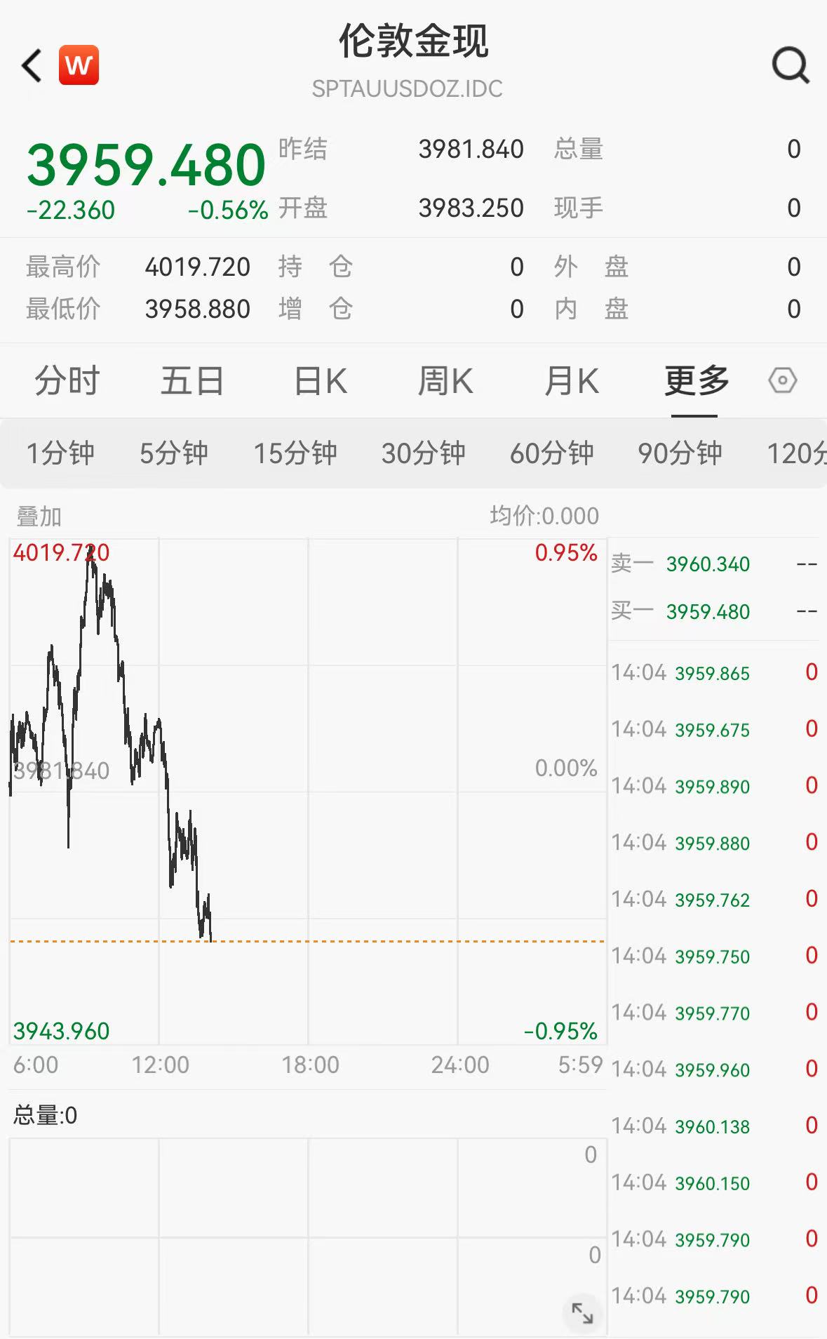 10月28日,現(xiàn)貨黃金盤中一度站上4000美元/盎司關(guān)口,隨后下挫,價(jià)格跌破3960美元/盎司。