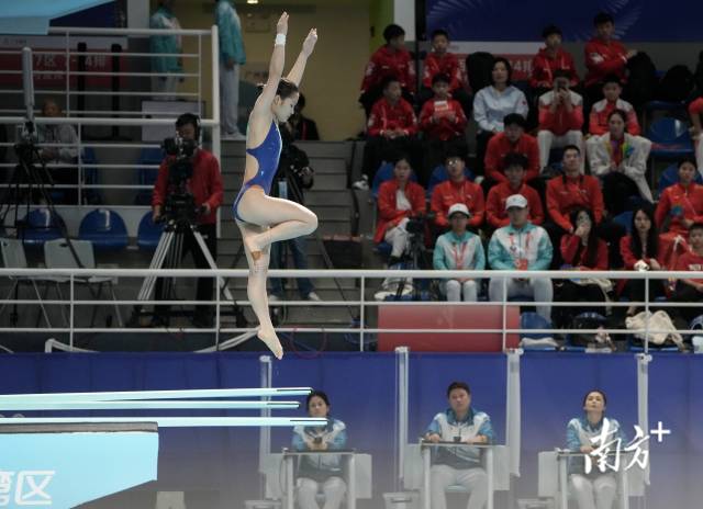 今天上午,十五運會跳水項目第三塊金牌誕生。廣東隊王偉瑩摘得跳水女子個人全能項目的金牌!
