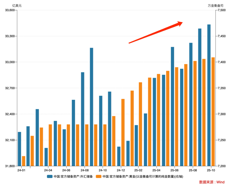 黃金儲備方面,2025年10月末官方黃金儲備連續第十二個月增加。