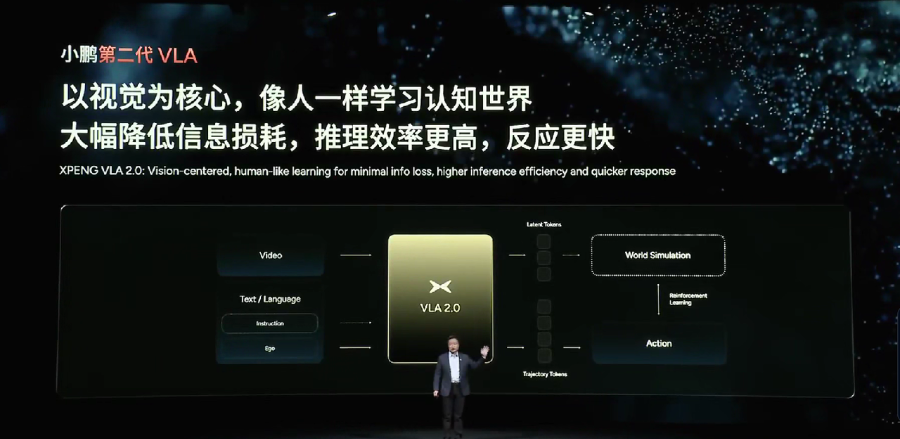 小鵬第二代VLA的思路就是如此——拆掉 “語言(L)” 這個人工教的中間層,讓模型直接從 “路景(V)→駕駛動作(A)” 的海量數(shù)據(jù)里,自己悟物理世界的規(guī)律,比如 “紅燈對應(yīng)剎車”“行人對應(yīng)減速”。