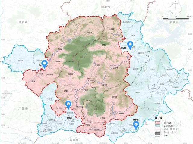 惠州市博羅縣羅浮山管委會、石灣鎮、園洲鎮、湖鎮鎮、長寧鎮、橫河鎮;龍門縣南昆山管委會、永漢鎮、麻榨鎮、龍華鎮、地派鎮、龍潭鎮。