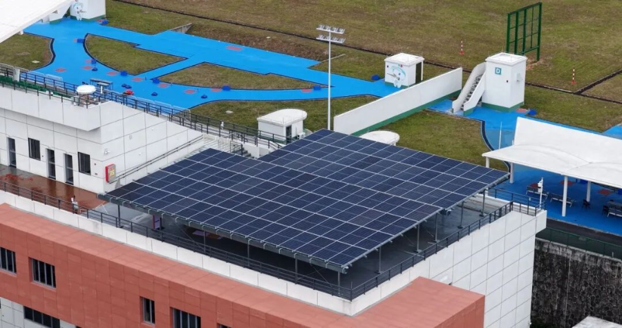 其中,天河體育中心,高景組件將傳統的停車空間,革新為與場館融為一體的“綠色能源基地”。光伏車棚在為數萬觀眾提供便利的同時,更將清潔電力無聲匯入電網,悄然點燃賽場內的燈光。在大學城體育中心攀巖場,高景組件靜駐于場館建筑之上,實現場館屋頂光伏全覆蓋。在廣州飛碟訓練中心,高景開展高效光伏屋面一體化建設。