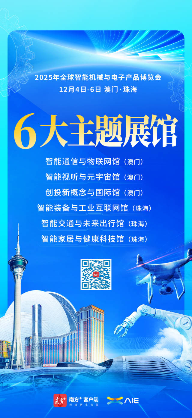 12月4日至6日,2025全球智能機(jī)械與電子產(chǎn)品博覽會(AIE)將在澳門與珠海雙城啟幕。