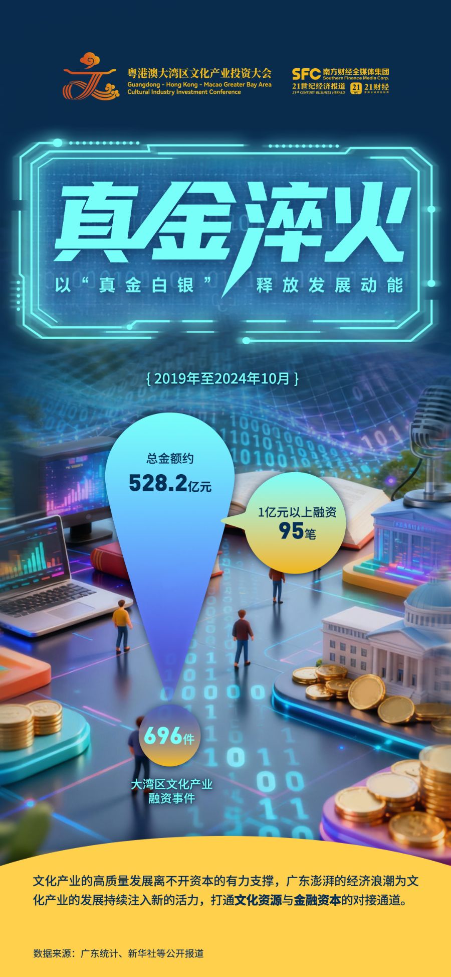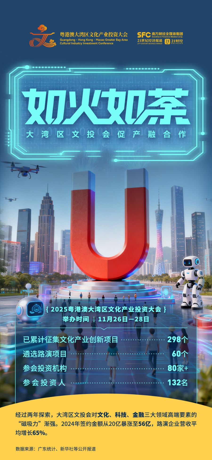 2025粵港澳大灣區文化產業投資大會(下稱“大灣區文投會”)將于11月26日至28日舉行。本屆大會緊密結合近期出臺的廣東新一輪推動文化產業高質量發展“政策包”六大產業方向,著力助推廣東文化新業態實現關鍵突破。