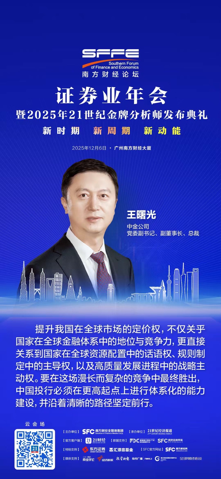 “提升我國在全球市場的定價權,不僅關乎國家在全球金融體系中的地位與競爭力,更直接關系到國家在全球資源配置中的話語權、規則制定中的主導權,以及高質量發展進程中的戰略主動權。”12月6日,在南方財經論壇2025年會證券業分論壇上,中金公司黨委副書記、副董事長、總裁王曙光在主題演講中如此表示。