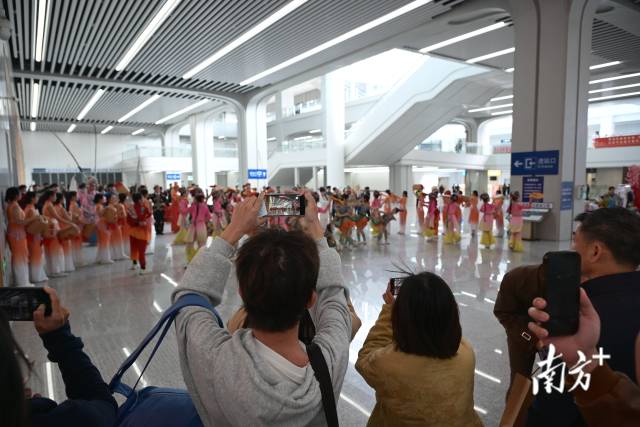 汕頭站舉行文藝表演迎接首批汕汕高鐵抵汕乘客。