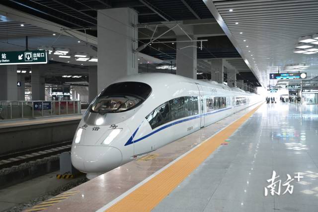 上午10時30分,G9785次復(fù)興號動車組列車準(zhǔn)時駛出廣州白云站站臺,滿載旅客向著湛江方向疾馳而去;同一時間,G9786次列車從湛江北站鳴笛啟程,一路向東駛向廣州。