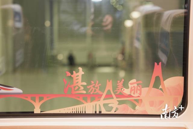 12月22日,廣湛高鐵首班列車G9785次列車上的窗花。