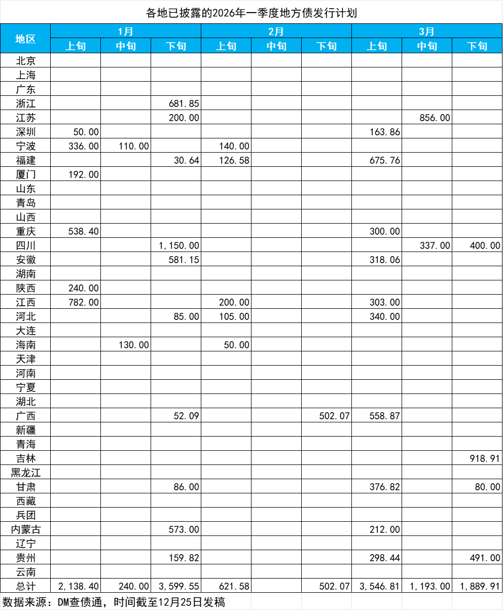 近日,各地密集披露2026年一季度擬發地方債規模。